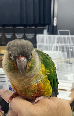 カラフルな色の人慣れしたインコです