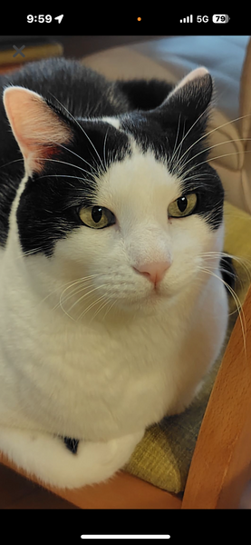 頭くっきり黒いハチワレです。