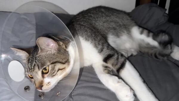 脱走時エリザベスカラーをつけてました。