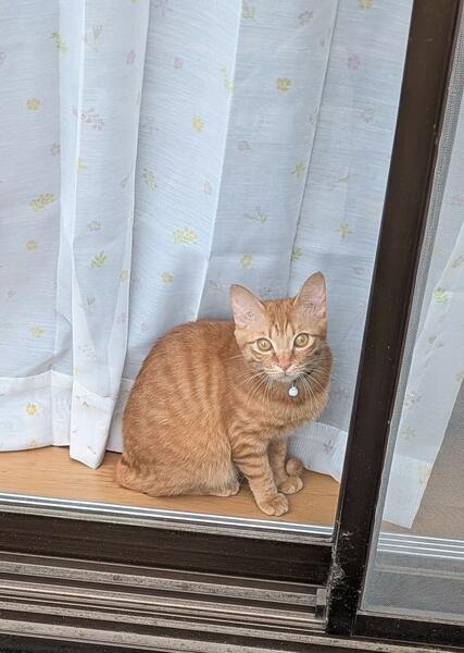 首輪してないです。茶トラ 白い部分がない、しっぽシマシマ、金色目